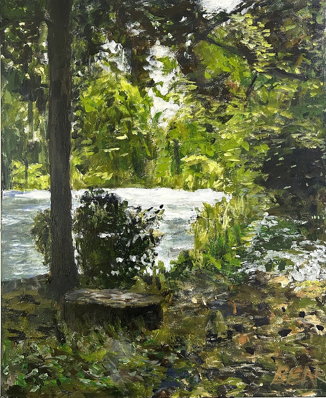 A Stream Runs Through It - An impressionist view of a lovely spot in Perth's Stewart Park. Acrylic on Canvas 36 x 36 $850